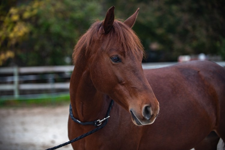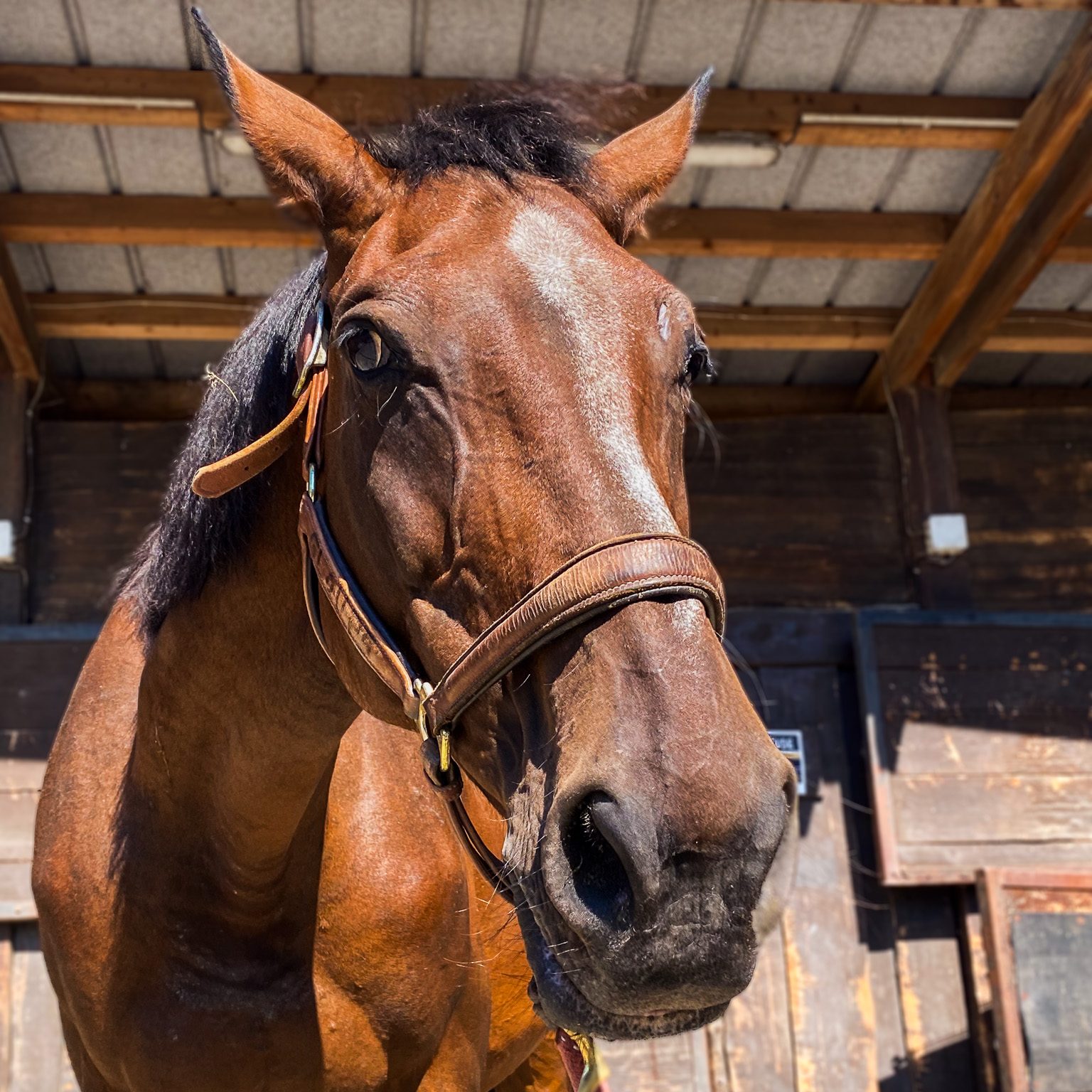 Ce grand bai est le cheval le plus grand du club! Le gentil géant est aussi un trotteur réformé. Il est reconnaissable en cours grâce à ses oreilles qui sont toujours en arrière!